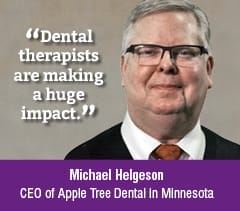 “The fact is, dental therapists are making a huge impact,” Helgeson says. Apple Tree employs nine therapists throughout Minnesota.