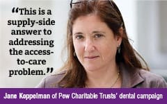 “Dentists are finding that if they can hire somebody who can do simple restorative care — to drill and fill teeth and extract loose teeth — for one-half to one-third the cost of a dentist, they can make a higher margin on the Medicaid revenues,” Koppelman says. “They can make a profit in their practices, and they can serve people who couldn’t get in to see a dentist before.