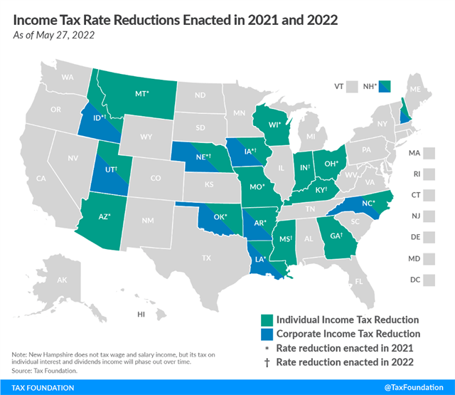 In 2021, Wisconsin was one of 13 states to enact laws permanently reducing individual and/or corporate income tax rates (several additional states implemented previously enacted cuts in 2021 as well). Thus far in 2022, eight states have newly enacted laws reducing income tax rates, and others may yet follow.