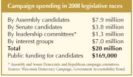 Candidates for governor can receive up to $485,000 in public money, and spend about $1.1 million-–a pittance compared to the $32 million spent by Jim Doyle and Mark Green and outside interests in the 2006 gubernatorial election. The last gubernatorial candidate to take the money was Ed Garvey, who was blown away by Tommy Thompson in 1998.