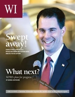 In our cover story, George Lightbourn (president of our publisher, the Wisconsin Policy Research Institute, and a former state secretary of administration) offers a memo “on how to restore Wisconsin’s greatness.” Drawing upon the institute’s Refocus Wisconsin project, Lightbourn lays out a roadmap for Gov.-elect Scott Walker and the GOP majority.